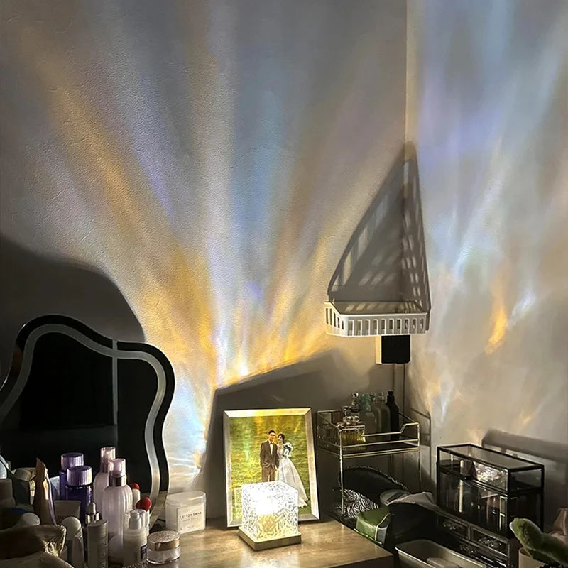 Dynamic Rotating Water Ripple Projector Night Light 16 Colors Flame Crystal Lamp for Living Room Study Bedroom Dynamic Rotating